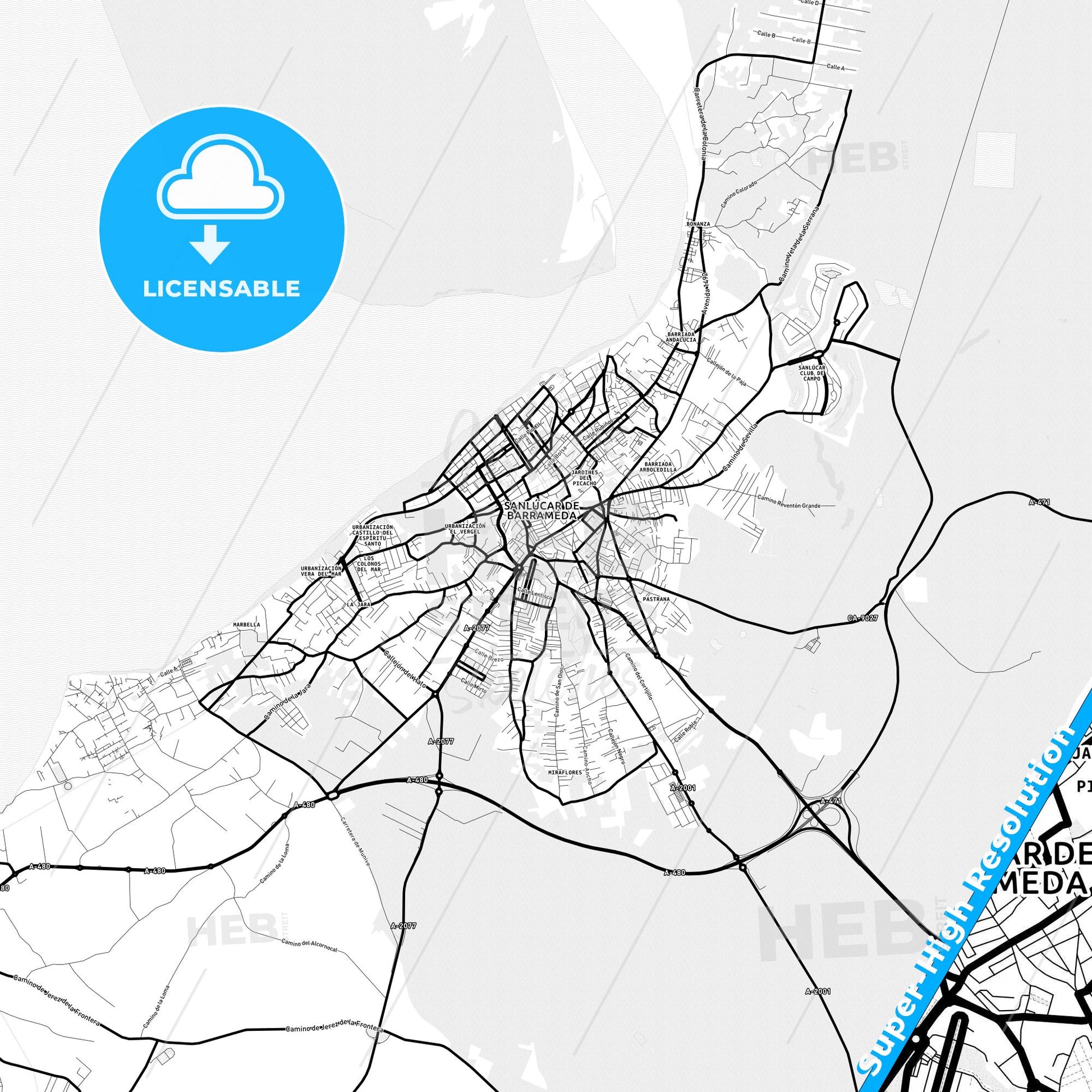 Sanlúcar de Barrameda, Cádiz, Spain in high-resolution, minimalist map designed for printed use. This detailed black and white map accurately highlights the street network and urban layout, making it an ideal ready-to-use map for your business.