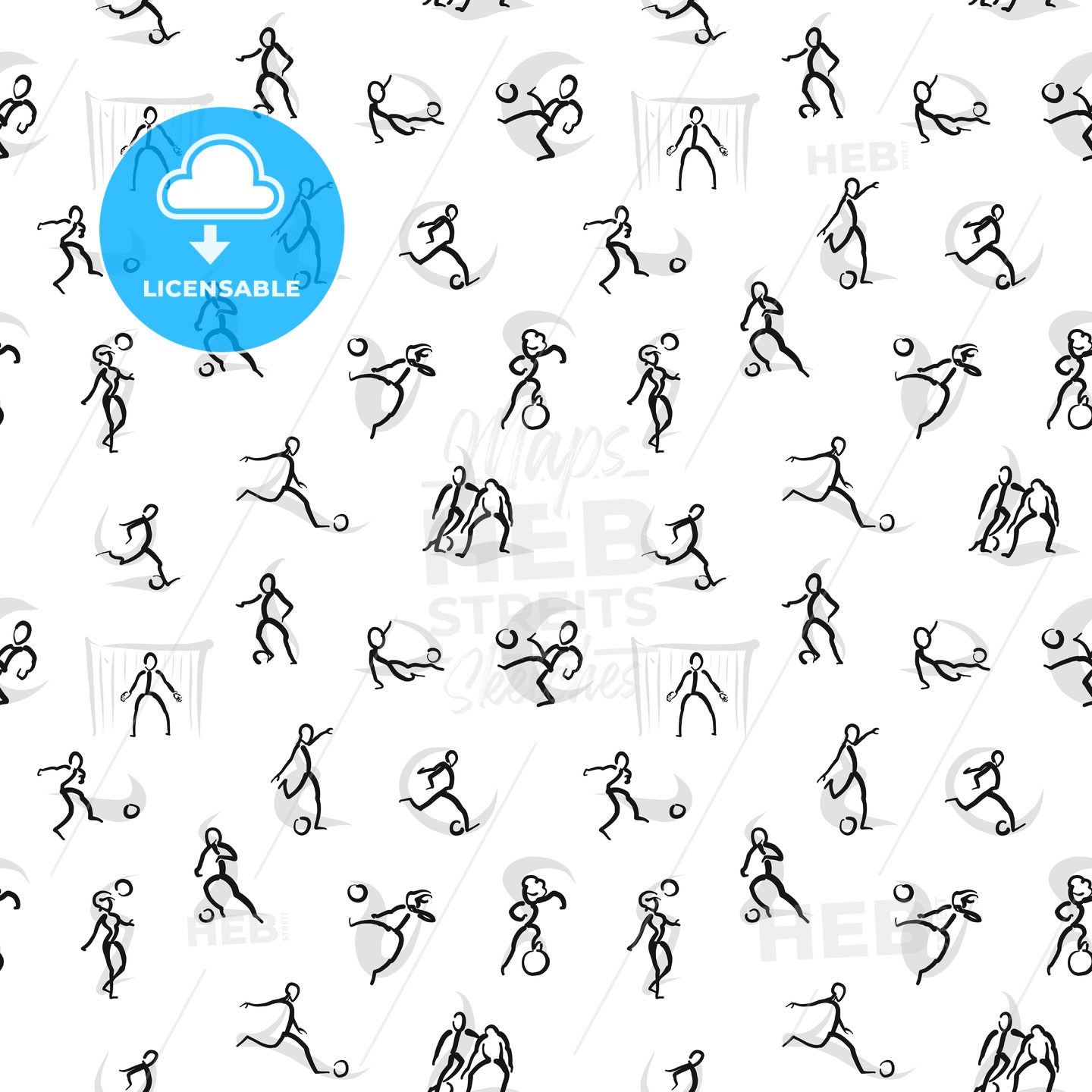 Seamless Set of Soccer Players - Wallpaper Design, hand drawn sketches on white backgound. Vector art