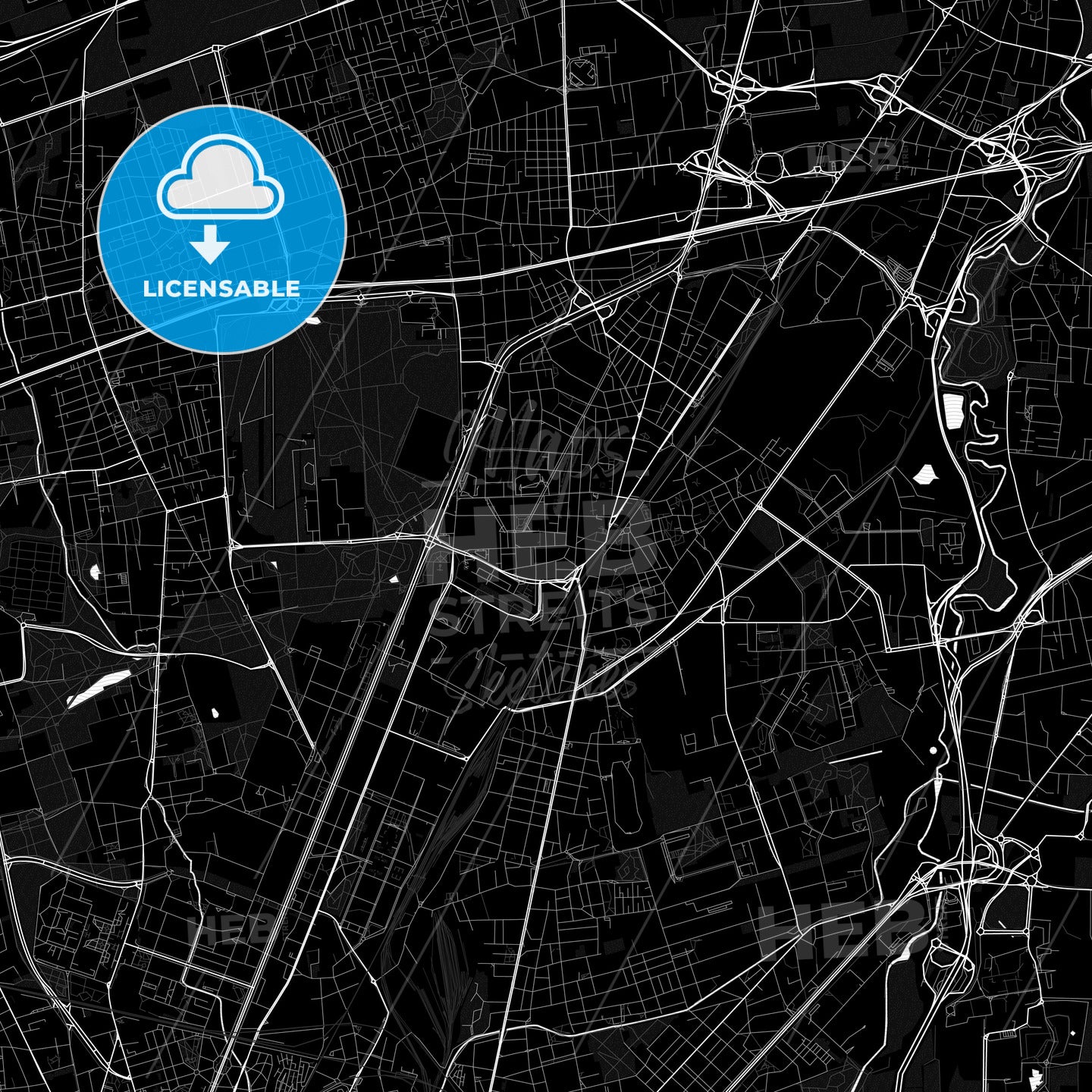 Black and white vector map of Sesto San Giovanni, Lombardy, Italy with fine structures and patterns for download. This printable map of Sesto San Giovanni with major and minor roads has been carefully designed for all personal and professional needs. The pure PDF vector version of this map is fully scalable. Depending on our license, you can use this map for websites, marketing background and wall art.