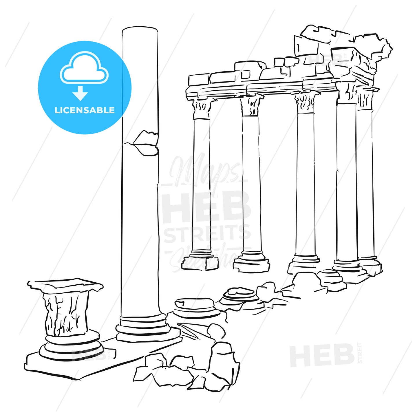 Side Temple Apollo Turkey Sketched, Famous Destination Landmark, Hand drawn Vector Artwork