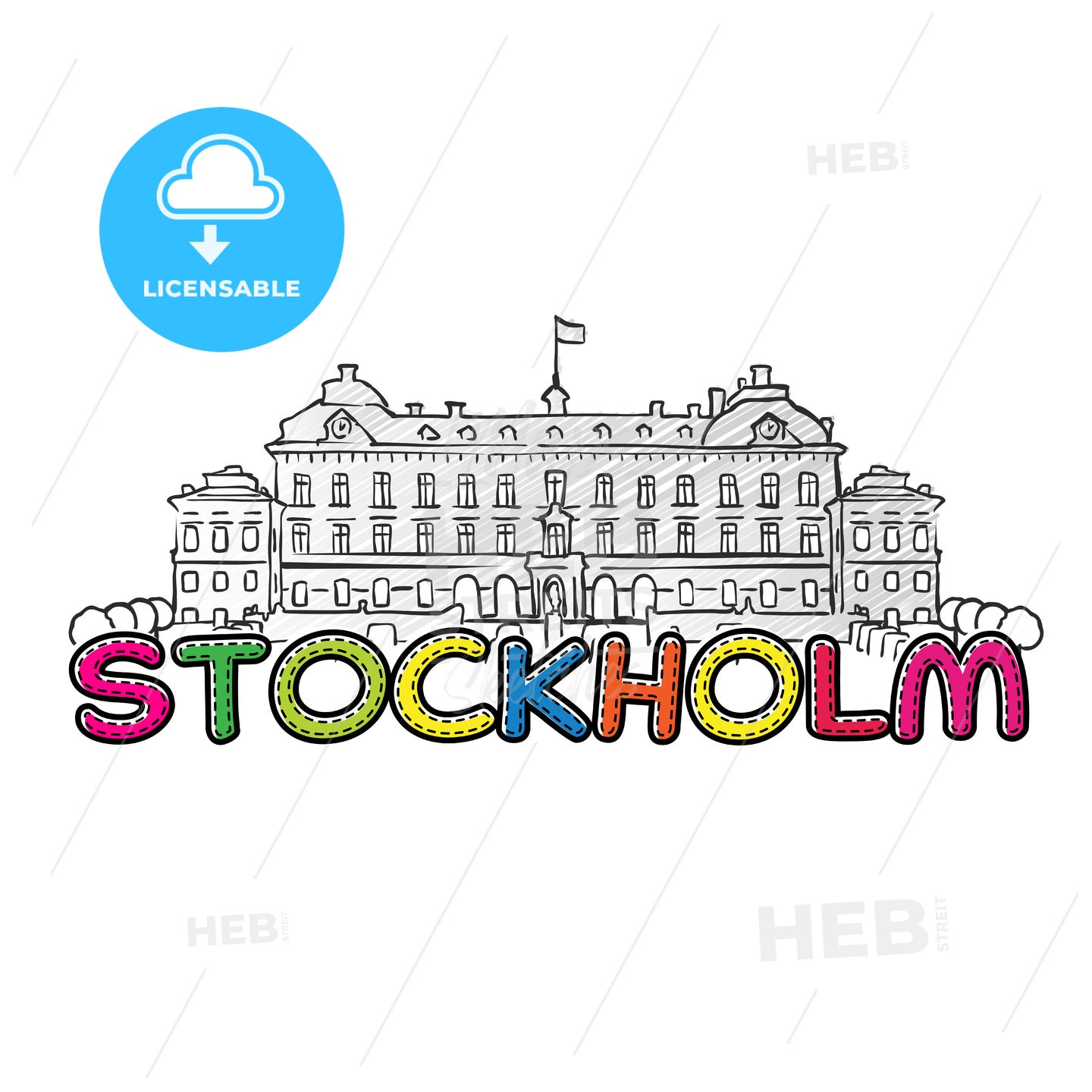 Stockholm beautiful sketched icon, famous hand-drawn landmark, city name lettering, vector illustration