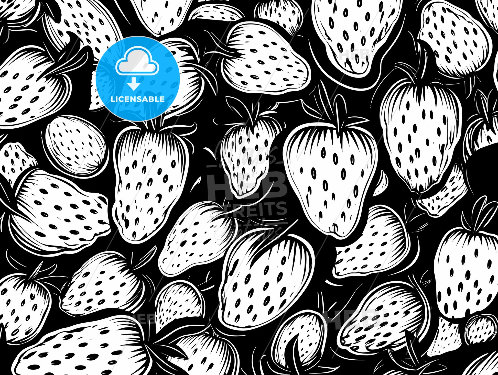 Strawberries And Yogurt. - a black and white pattern of strawberries
