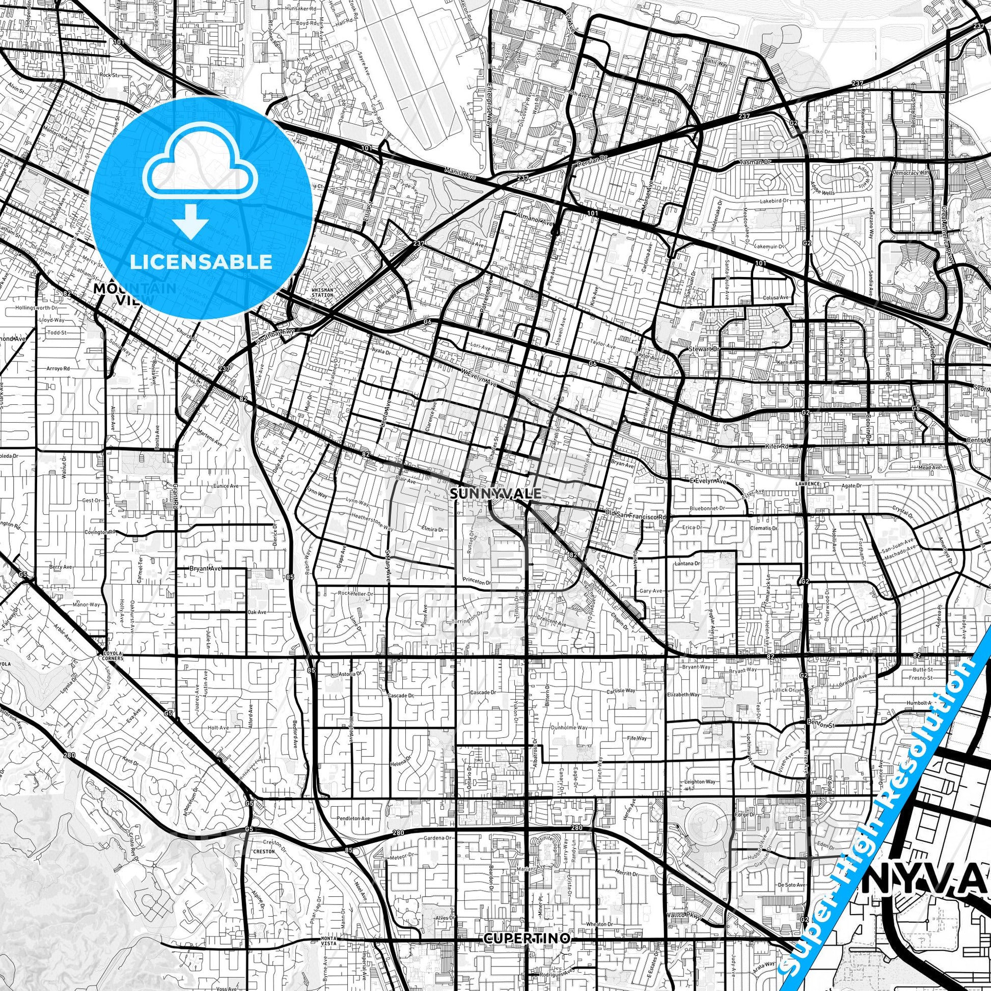 Sunnyvale, California, California in high-resolution, minimalist map designed for printed use. This detailed black and white map accurately highlights the street network and urban layout, making it an ideal ready-to-use map for your business.