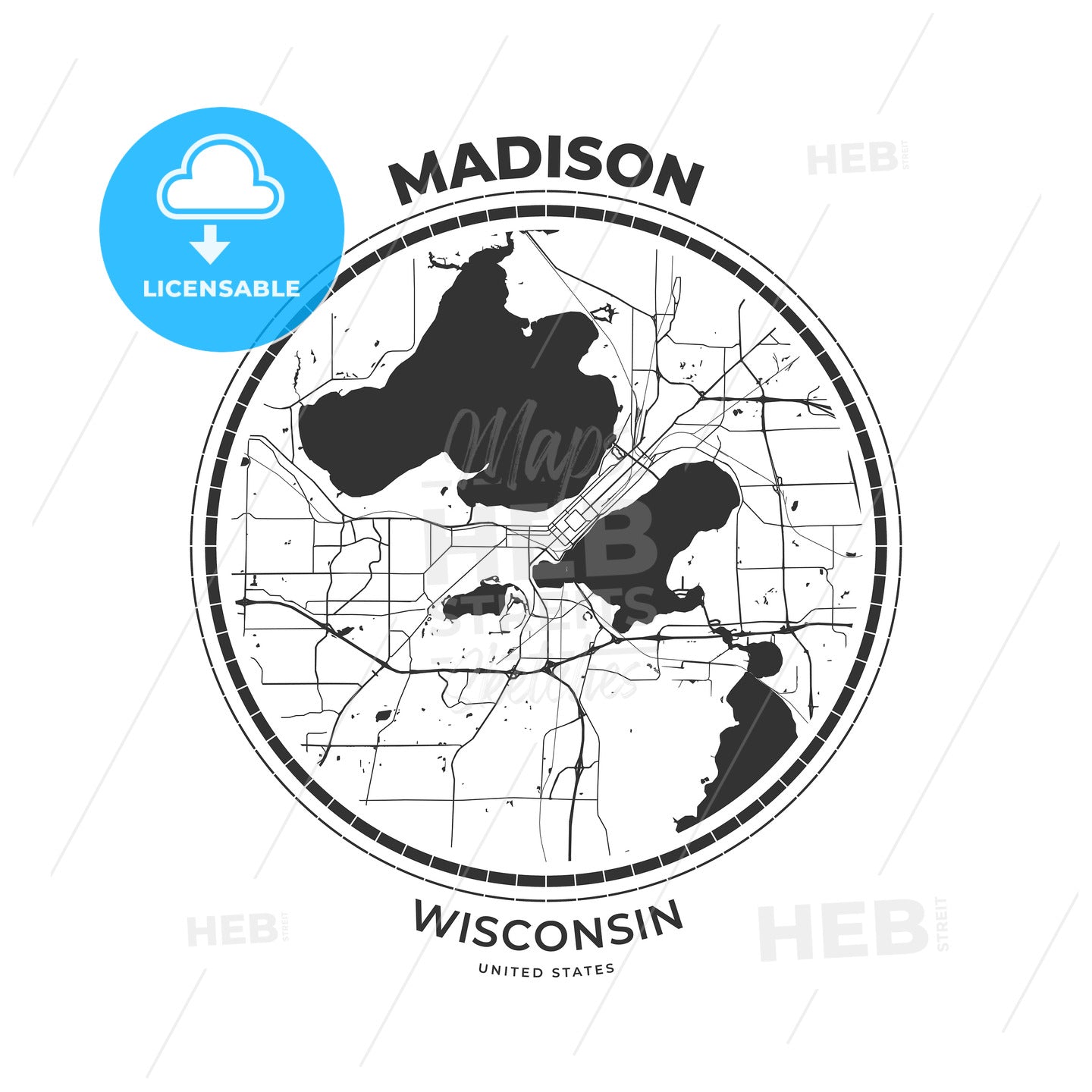 T-shirt map badge of Madison, Wisconsin - pure Vector EPS with transparent background