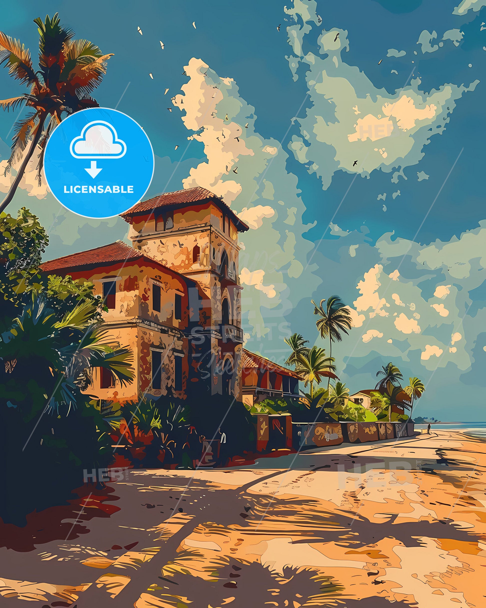Vibrant Gambian Art: Colorful Building on Beach, Africa