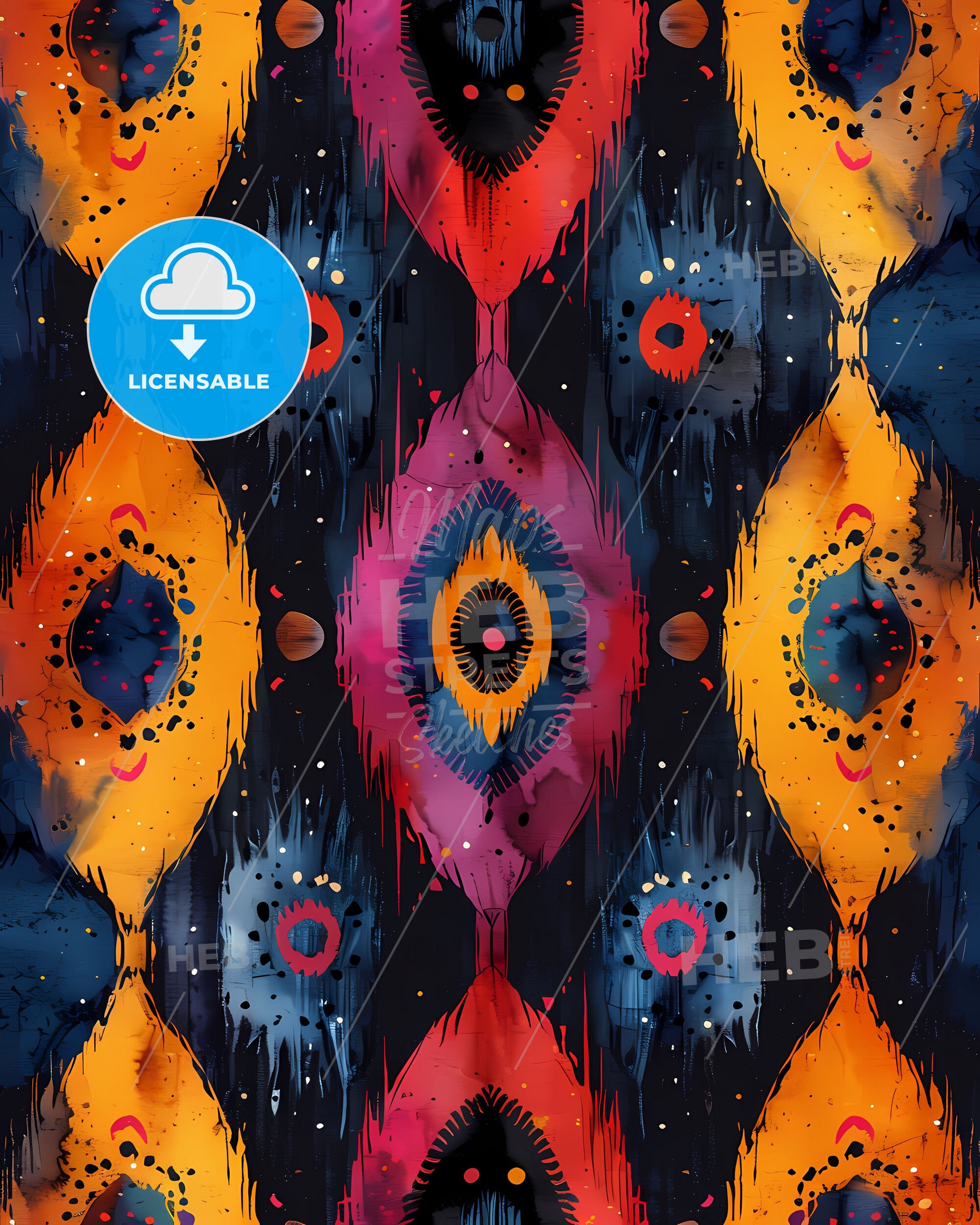 Aztec Fabric Ikat Seamless Pattern: Colorful Triangle Shapes on Black Background for Art and Design