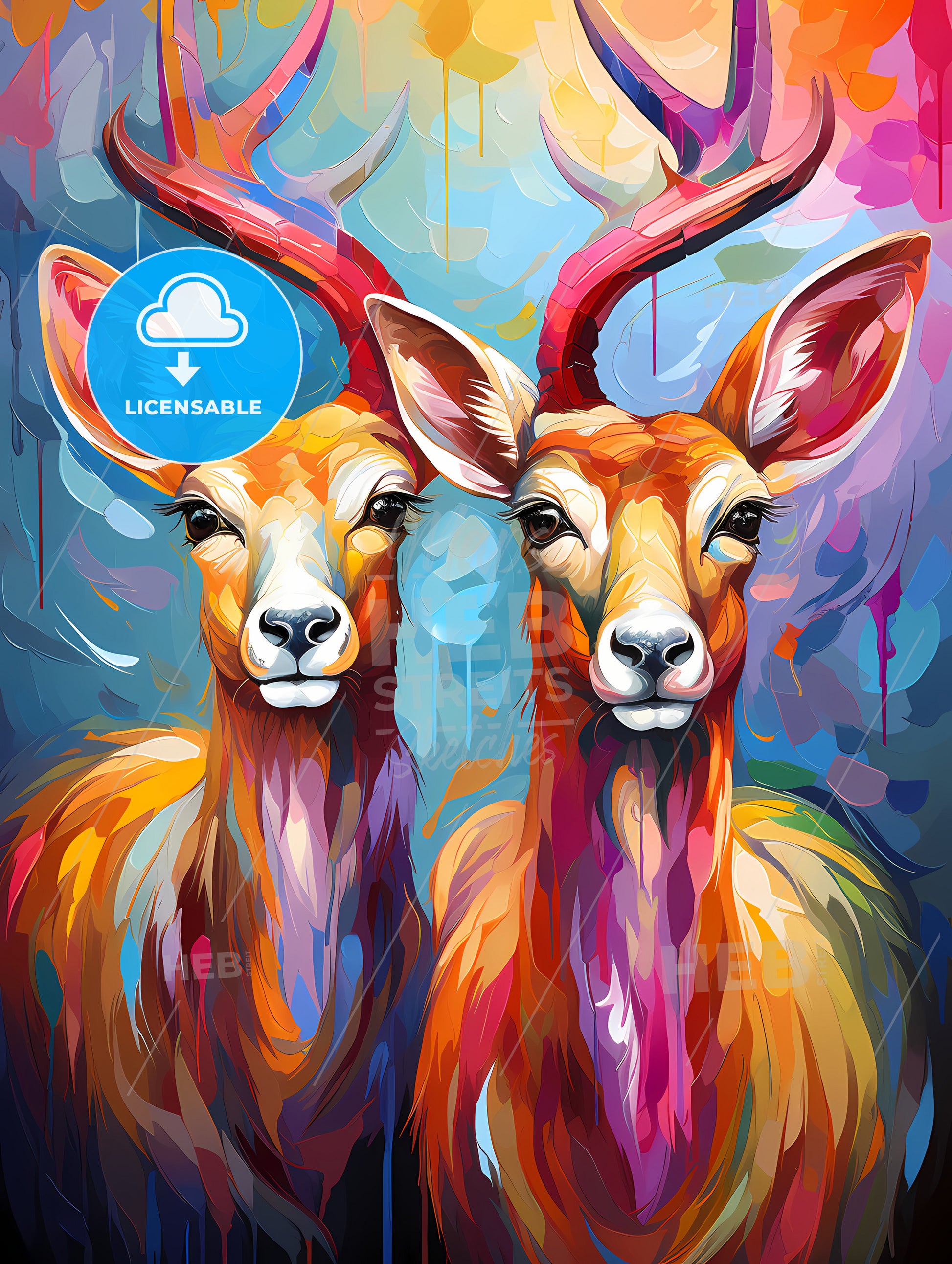 Two Female Lesser Kudu Antelopes - a couple of colorful deer