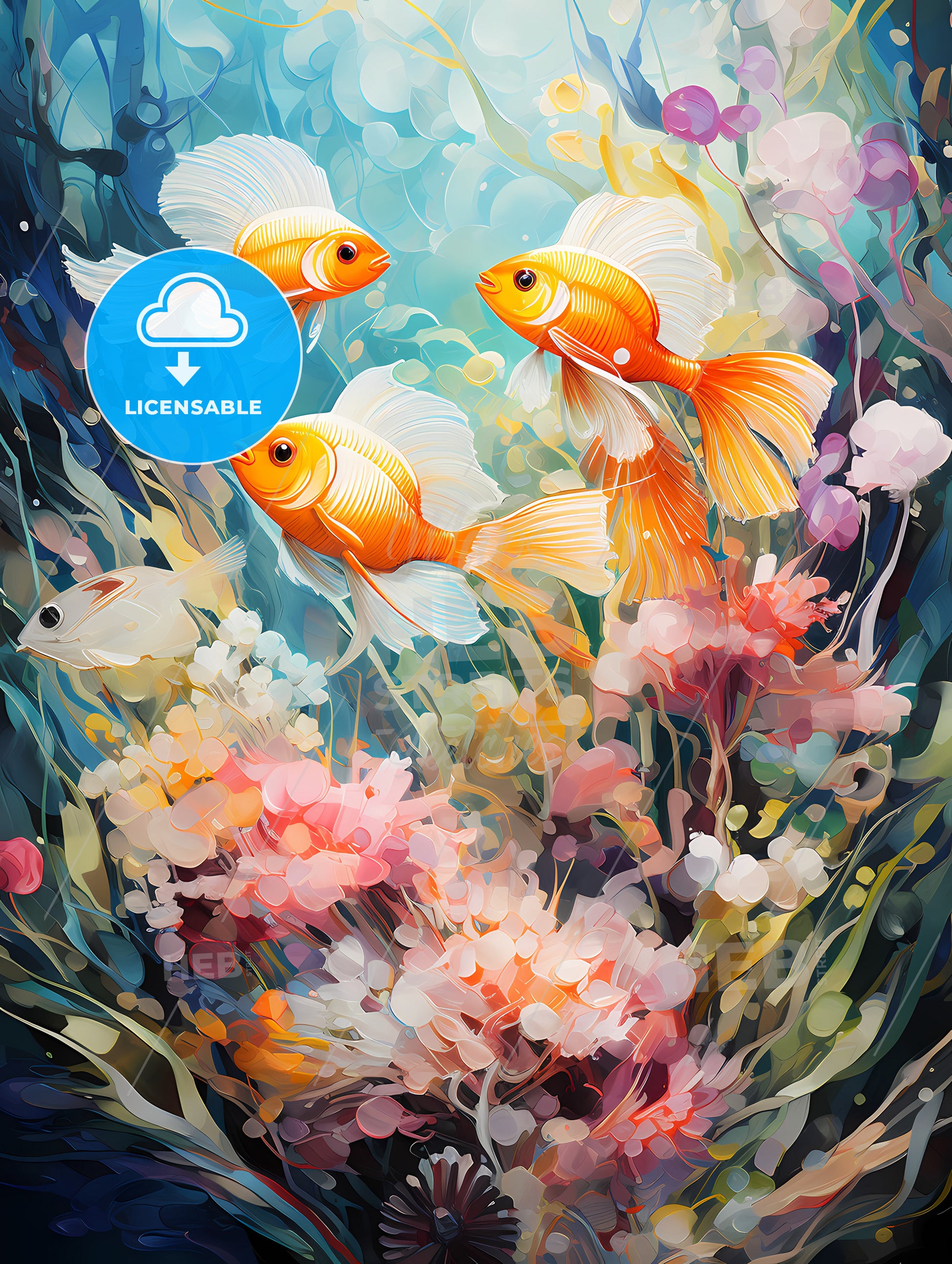 Underwater Aquatic Life With Fishes - a goldfish swimming in water