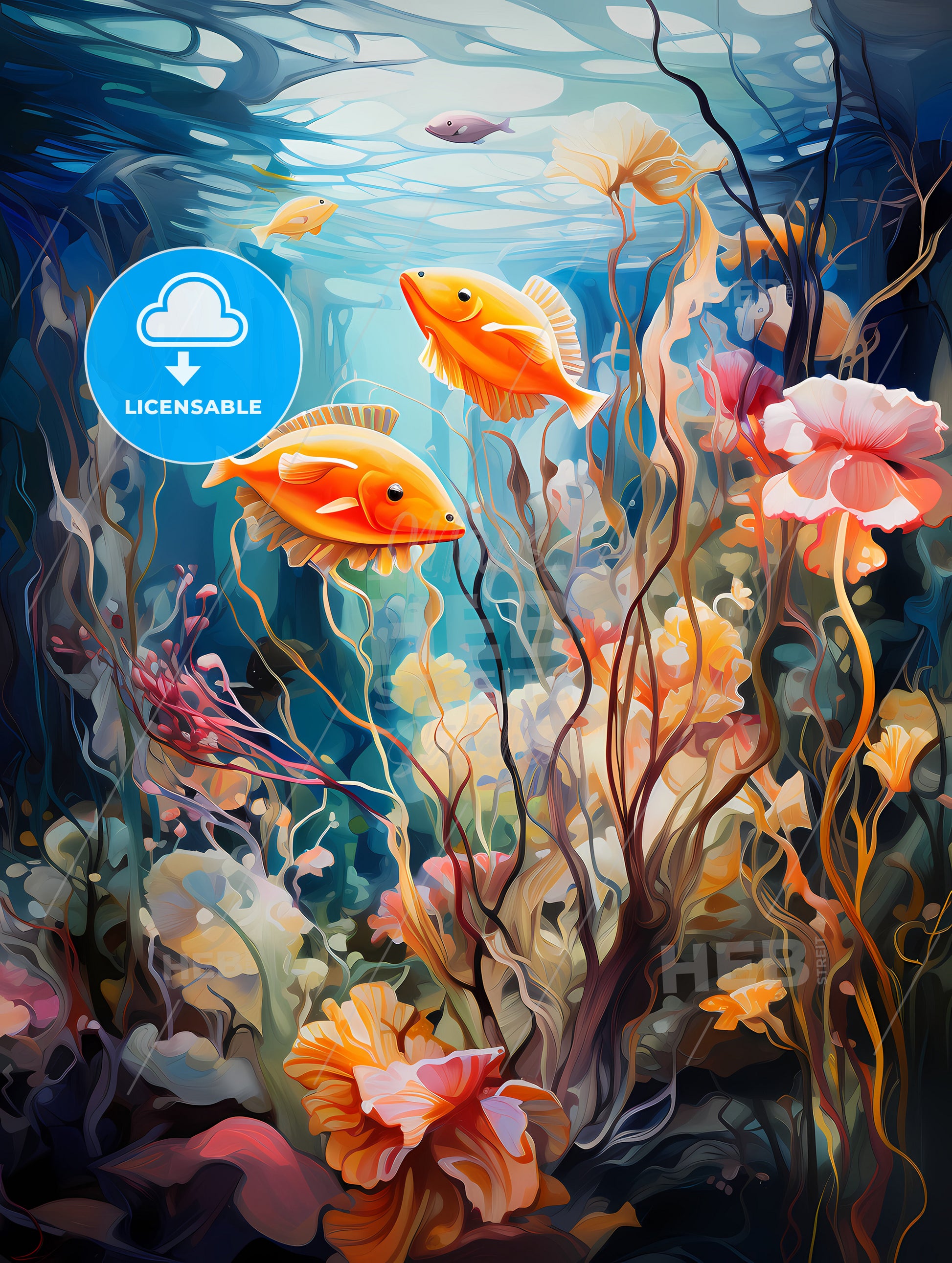 Underwater Aquatic Life With Fishes - a painting of fish swimming in water