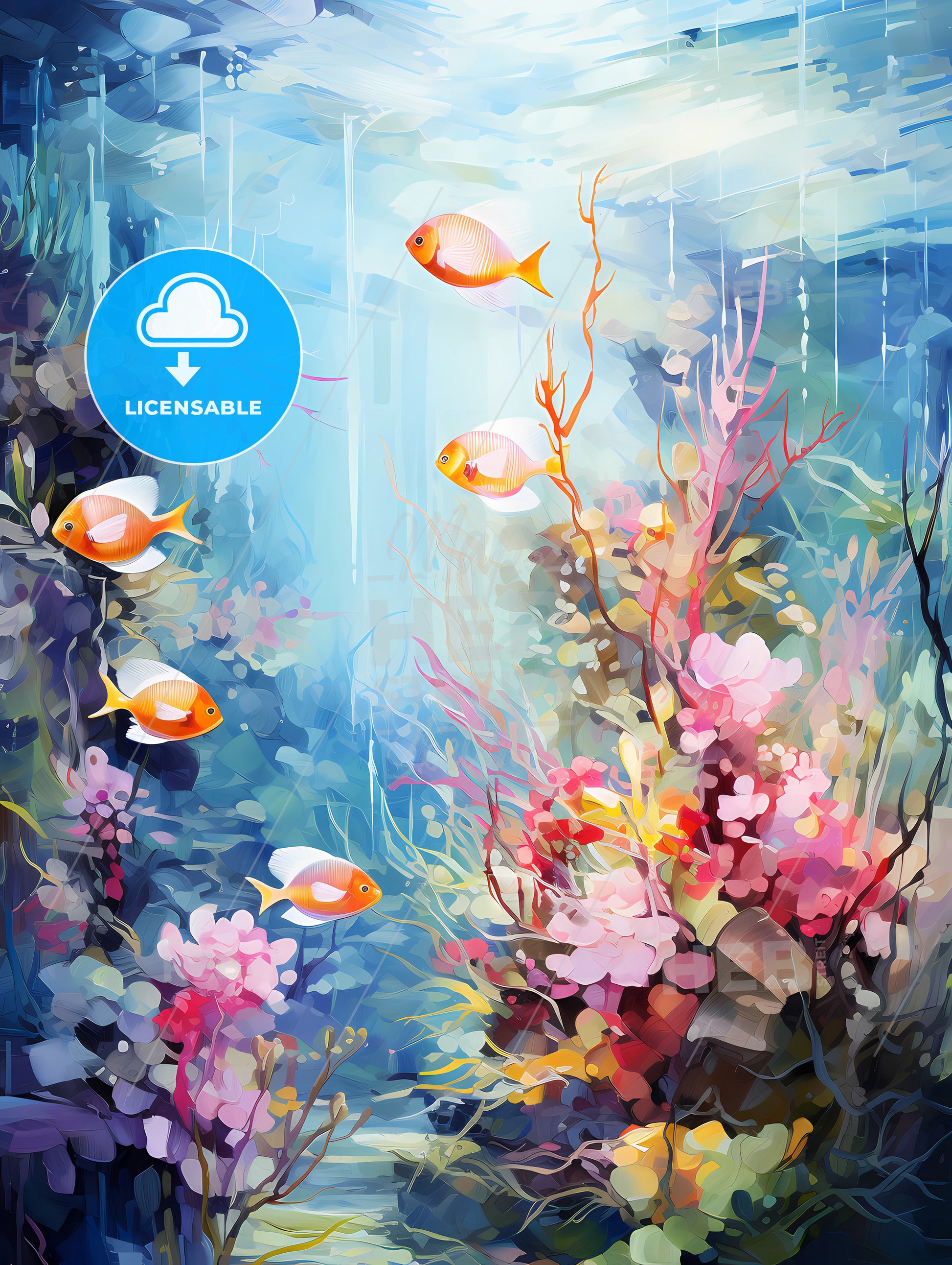 Underwater Aquatic Life With Fishes - a painting of fish swimming in water