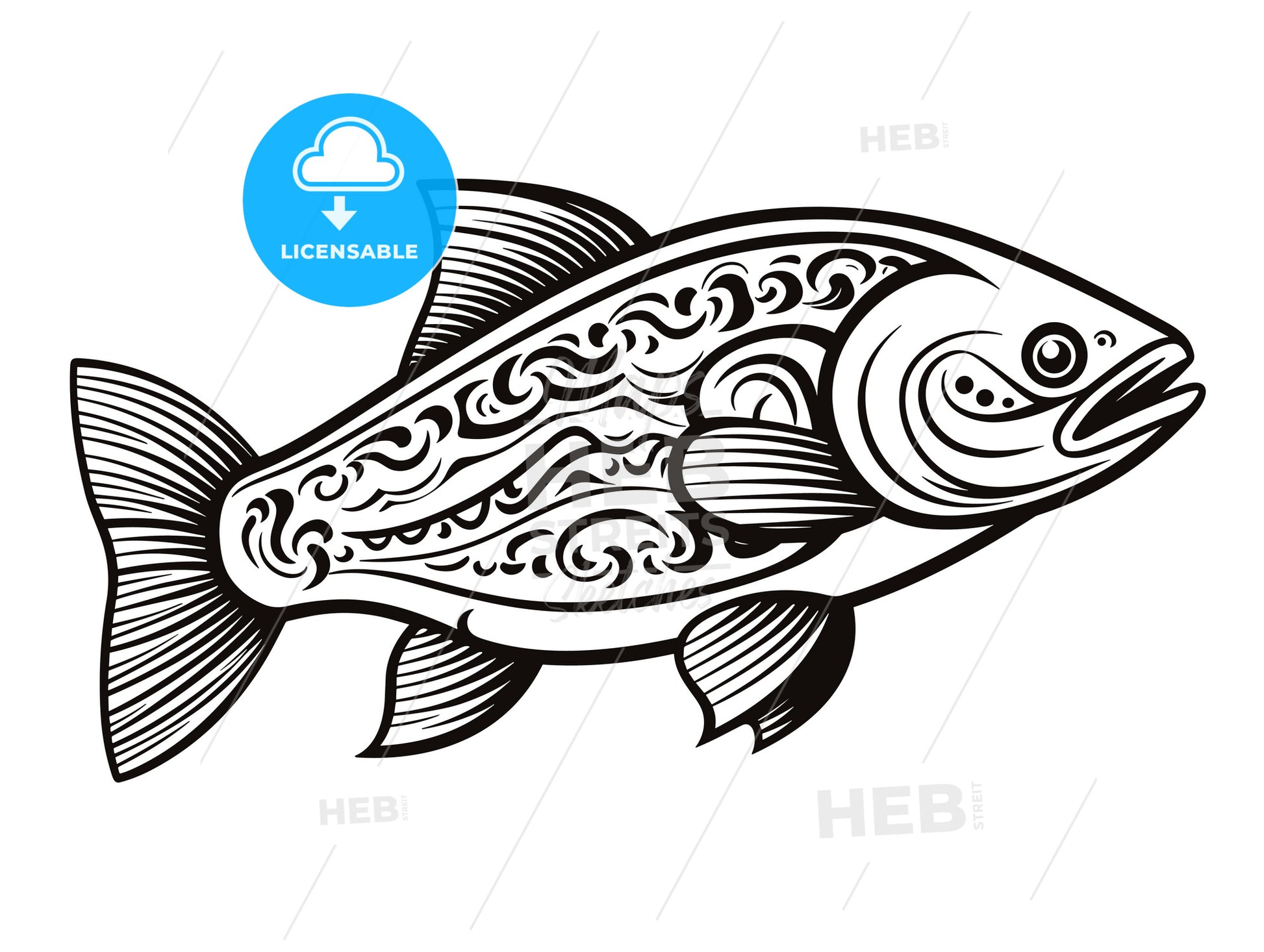 Vector Symbol Of Trout Fish. - a black and white drawing of a fish