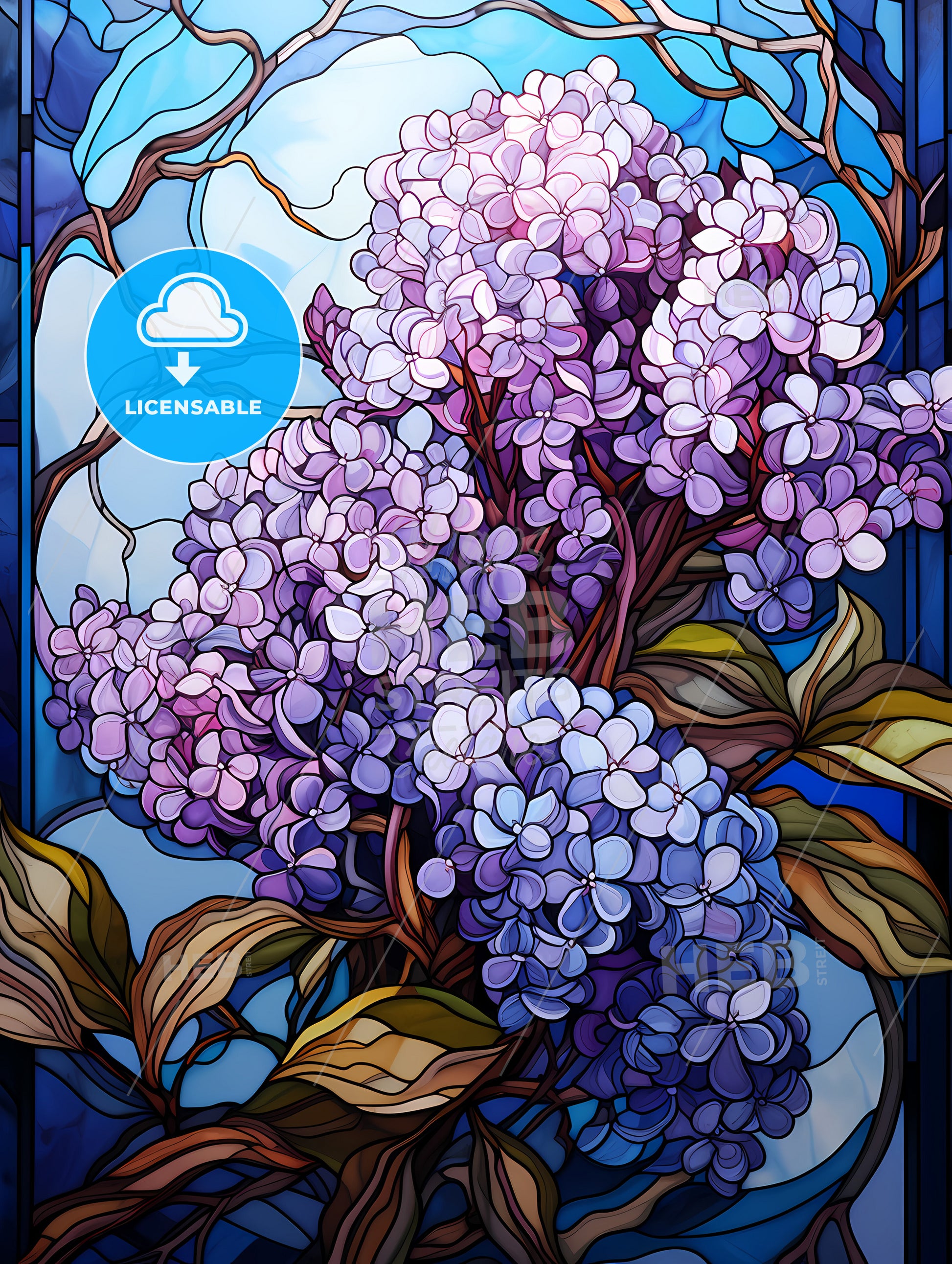 Vibrant Stained Glass Lilac Flower Elegance - a stained glass window with purple flowers