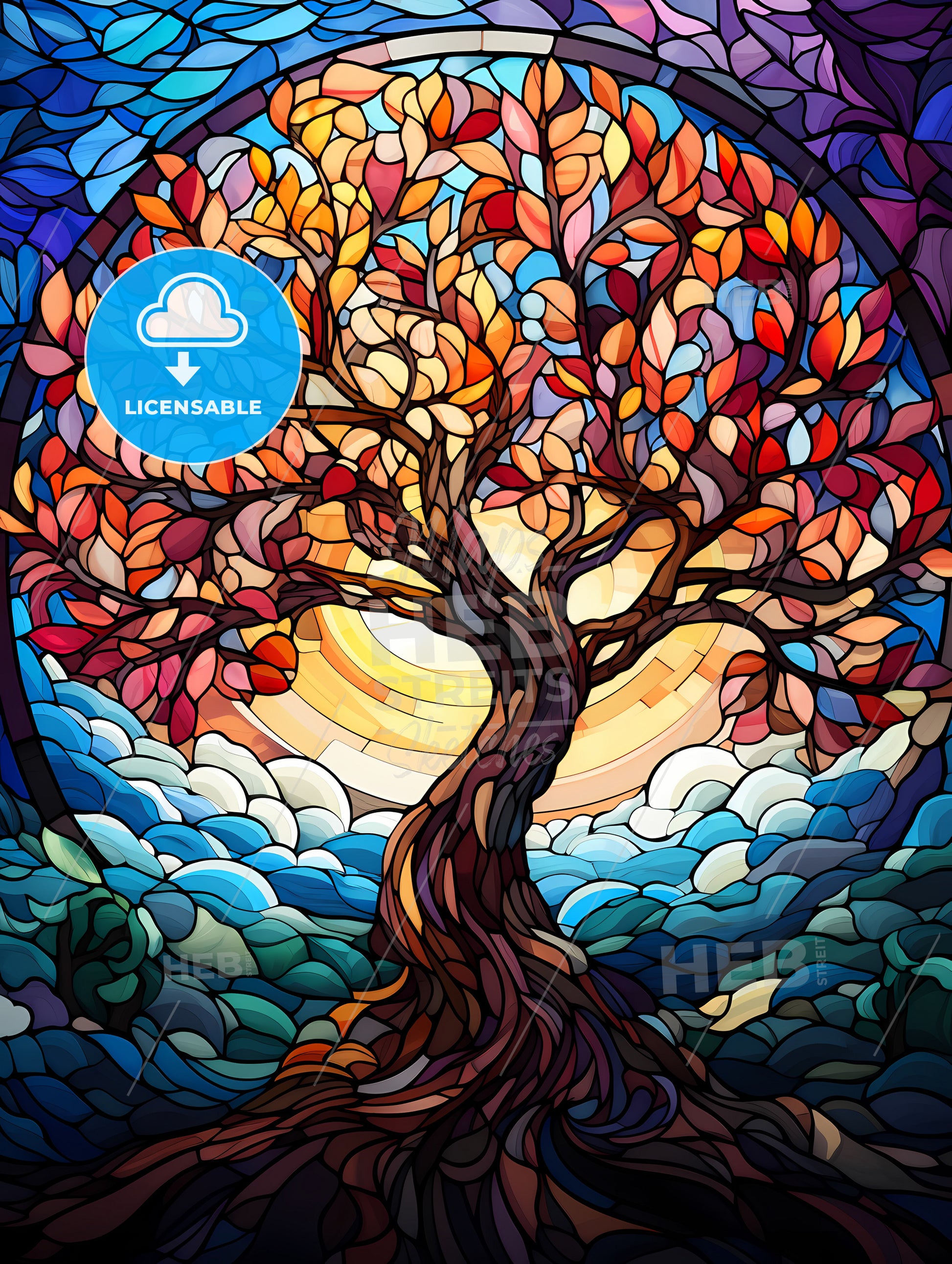 Vibrant Stained Glass Tree - a stained glass tree with colorful leaves