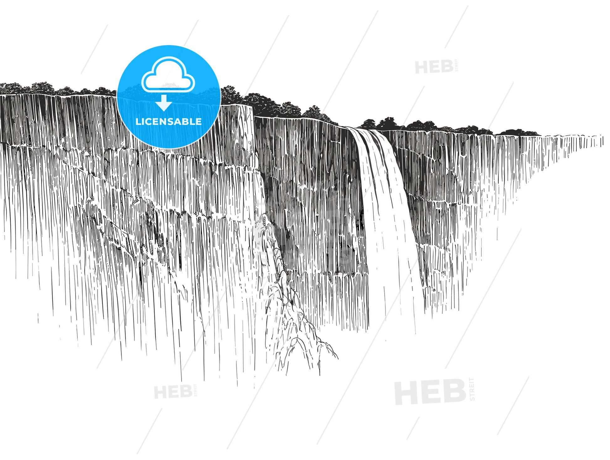 Victoria Falls - a black and white drawing of a waterfall