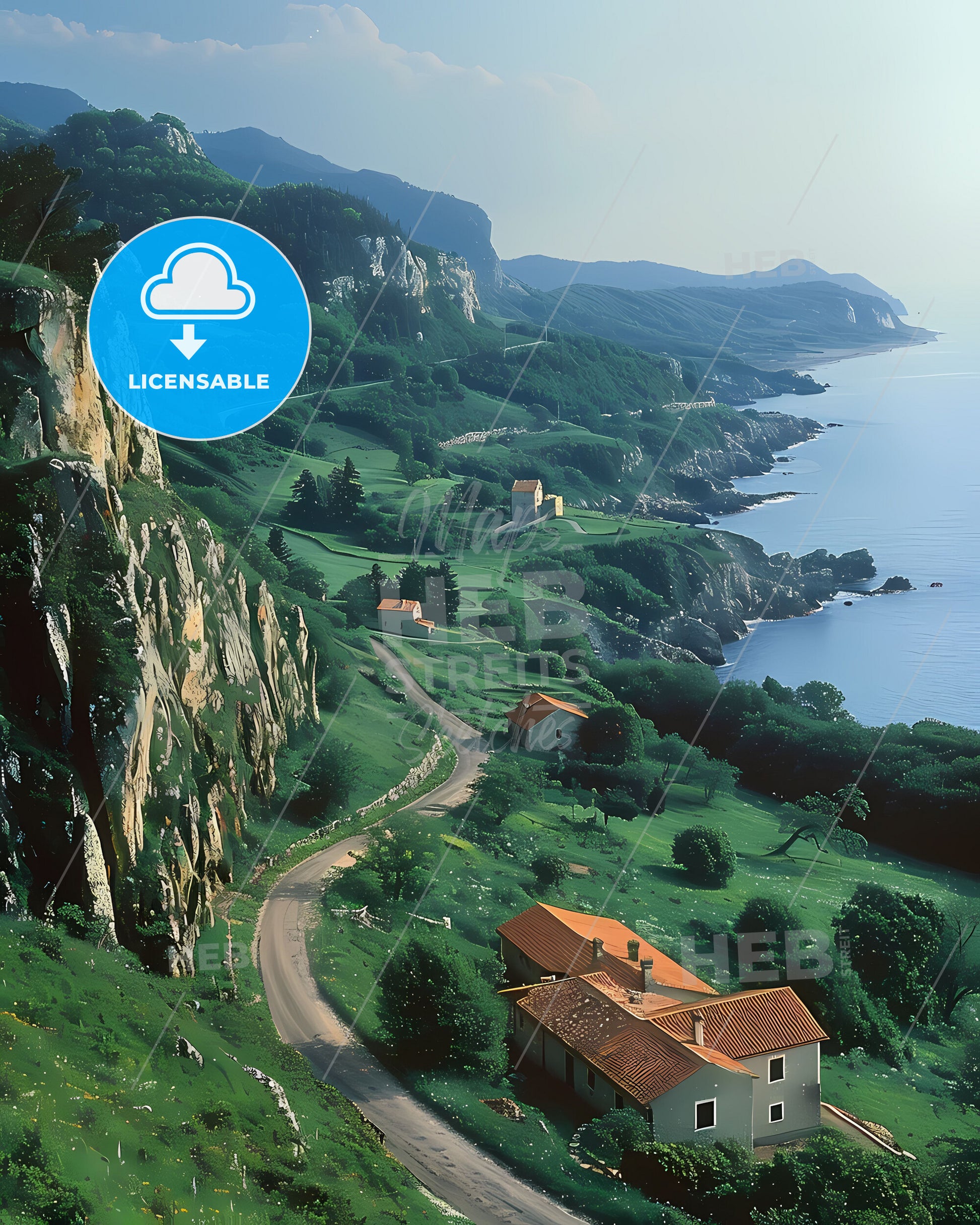 Vibrant Painting Depicting a Road to a Body of Water in Wisconsin, USA