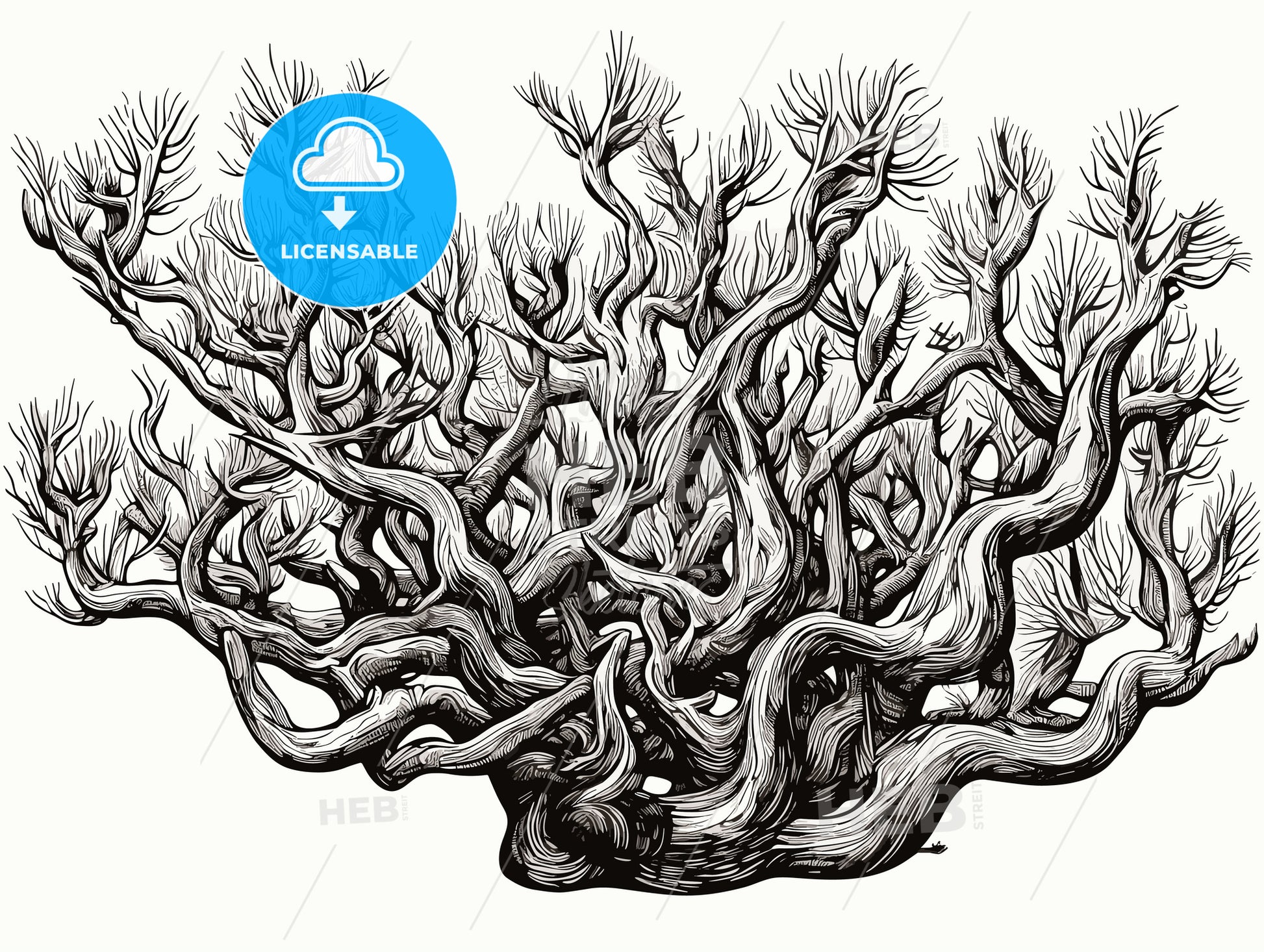 Woodcut Of A Cholla Cactus. - a black and white drawing of a tree