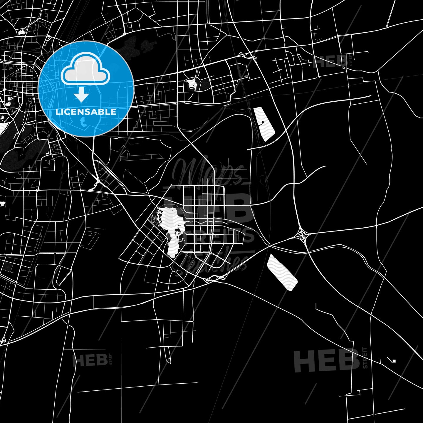 Black and white vector map of Xuzhou, Jiangsu, China with fine structures and patterns for download. This printable map of Xuzhou with major and minor roads has been carefully designed for all personal and professional needs. The pure PDF vector version of this map is fully scalable. Depending on our license, you can use this map for websites, marketing background and wall art.