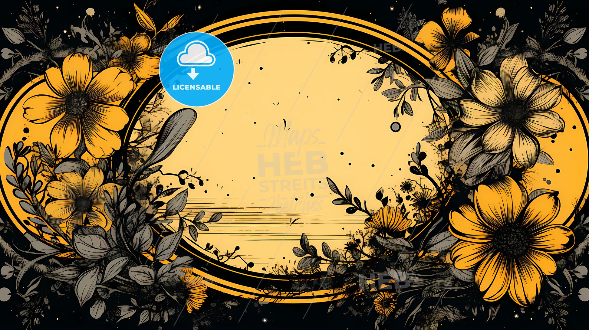 A bright yellow floral frame with intricate black details, surrounded by a white background.