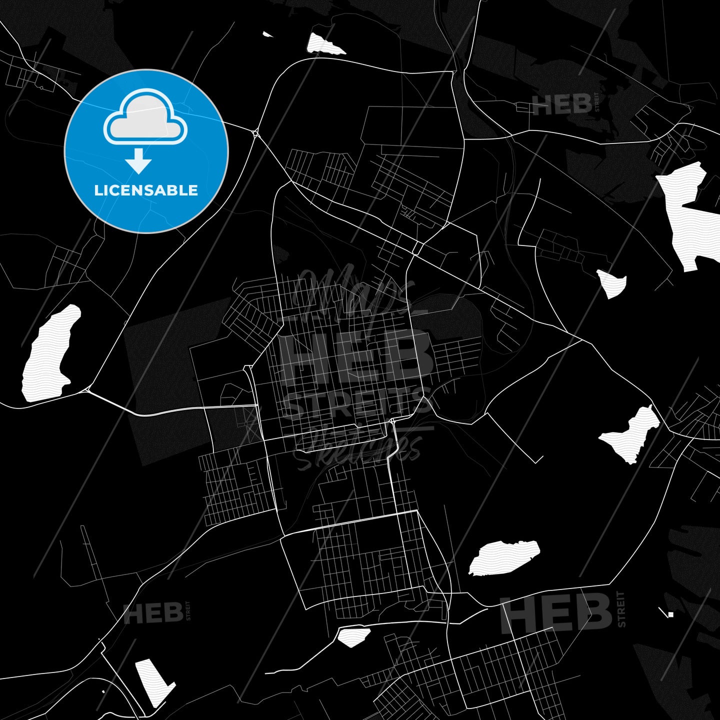 Black and white vector map of Yenakiieve, Donetsk Oblast, Ukraine with fine structures and patterns for download. This printable map of Yenakiieve with major and minor roads has been carefully designed for all personal and professional needs. The pure PDF vector version of this map is fully scalable. Depending on our license, you can use this map for websites, marketing background and wall art.