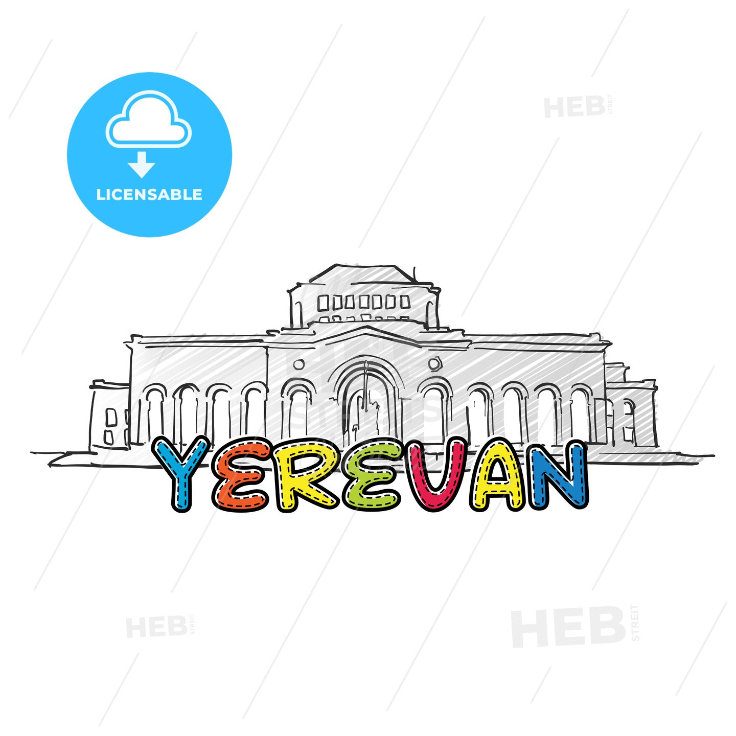 Yerevan beautiful sketched icon, famous hand-drawn landmark, city name lettering, vector illustration
