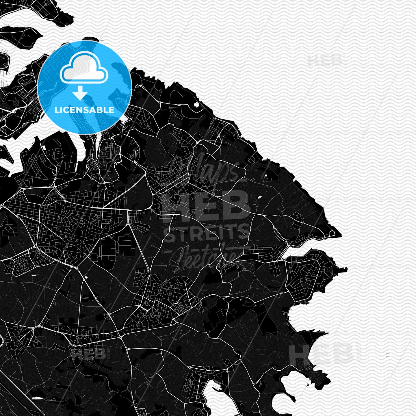 Black and white vector map of Żabbar, South Eastern Region, Malta with fine structures and patterns for download. This printable map of Żabbar with major and minor roads has been carefully designed for all personal and professional needs. The pure PDF vector version of this map is fully scalable. Depending on our license, you can use this map for websites, marketing background and wall art.