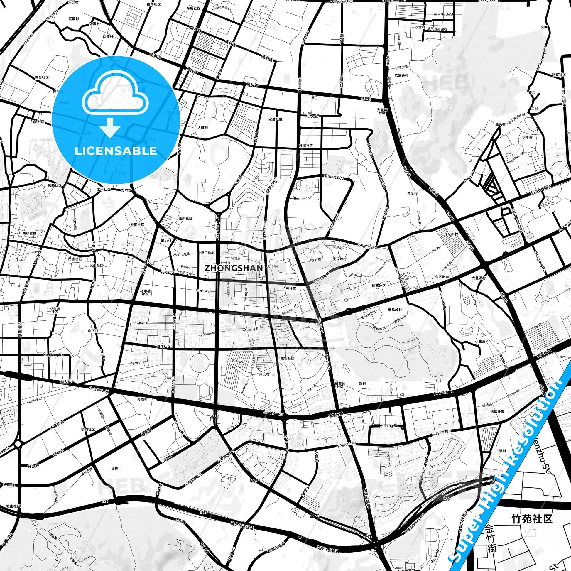 Whether you are a traveler, an urban design enthusiast or a collector of city maps, this Zhongshan map is a stylish and functional addition to any project. Download now and discover Zhongshan with a modern cartographic touch!